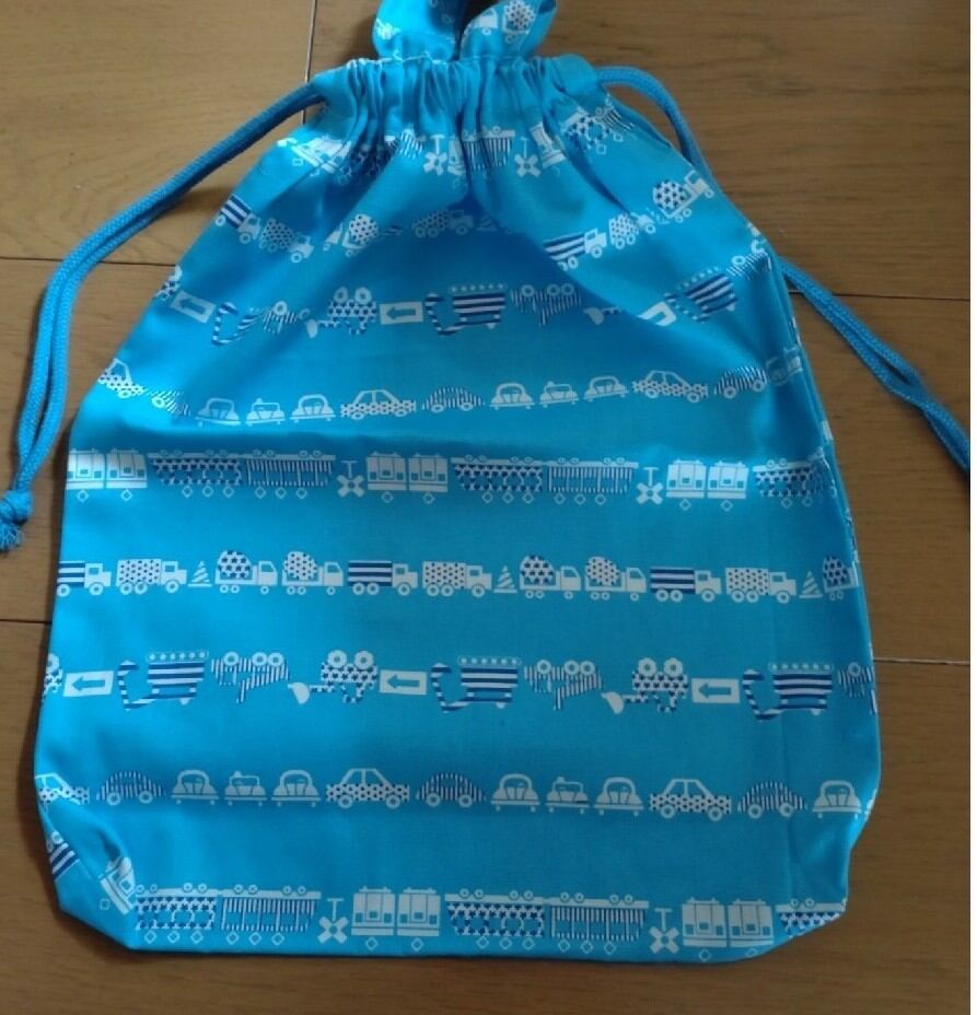 #巾着袋 #入園入学 #車柄 #水色 #持ち手付き #体操服入れ #カジュアルバッグ #文房具入れ #おしゃれ #ht-hana