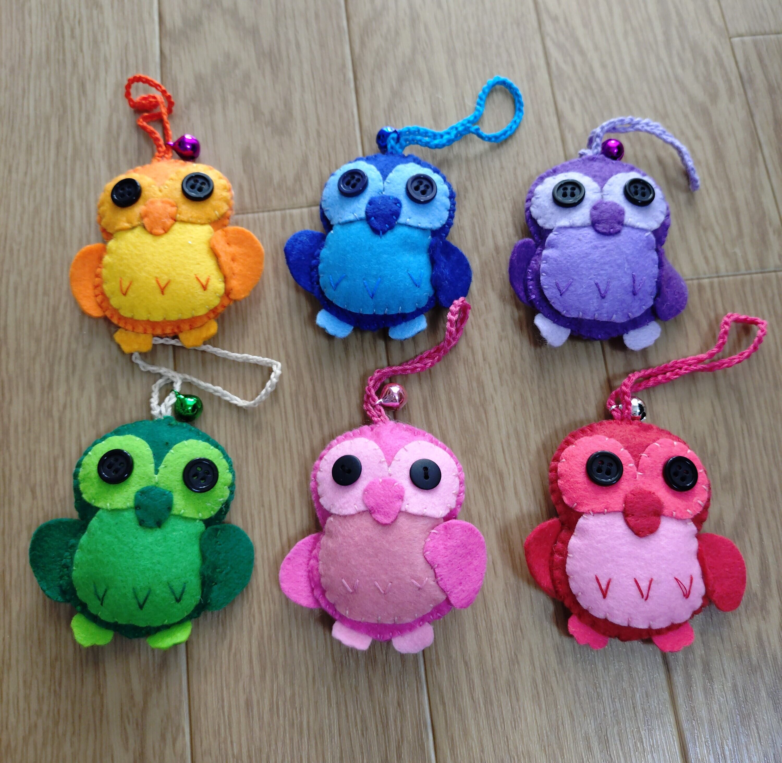 【ストラップ】フエルトフクロウ 6色セット