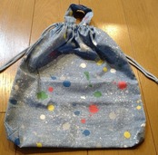 お子様の大切なアイテムを可愛く守る、そんな役割をしてくれる巾着袋です。