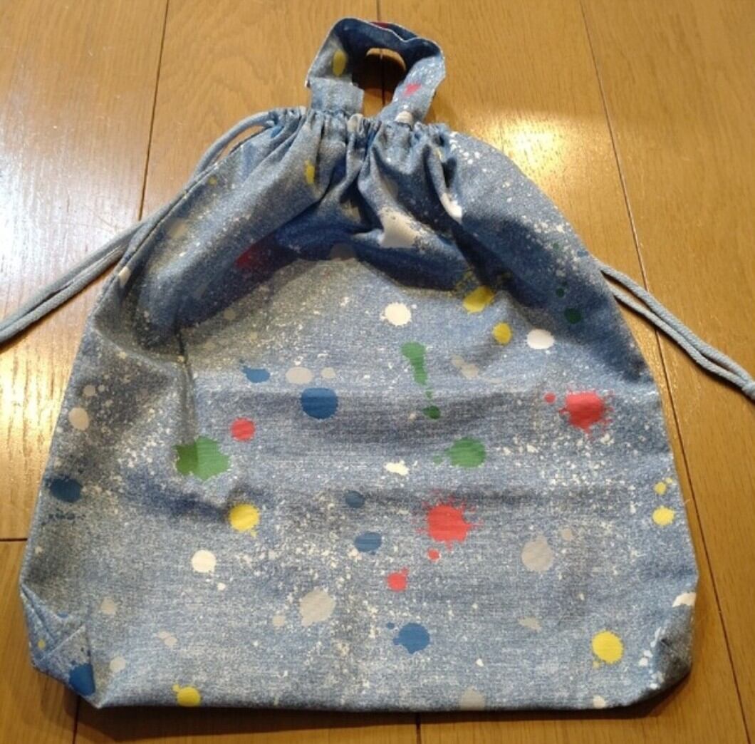 #巾着袋 #入園入学 #ペンキ柄 #持ち手付き #体操服入れ #カジュアルバッグ #文房具入れ #おしゃれ #ht-hana