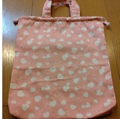 お子様の大切なアイテムを可愛く守る、そんな役割をしてくれる巾着袋です。