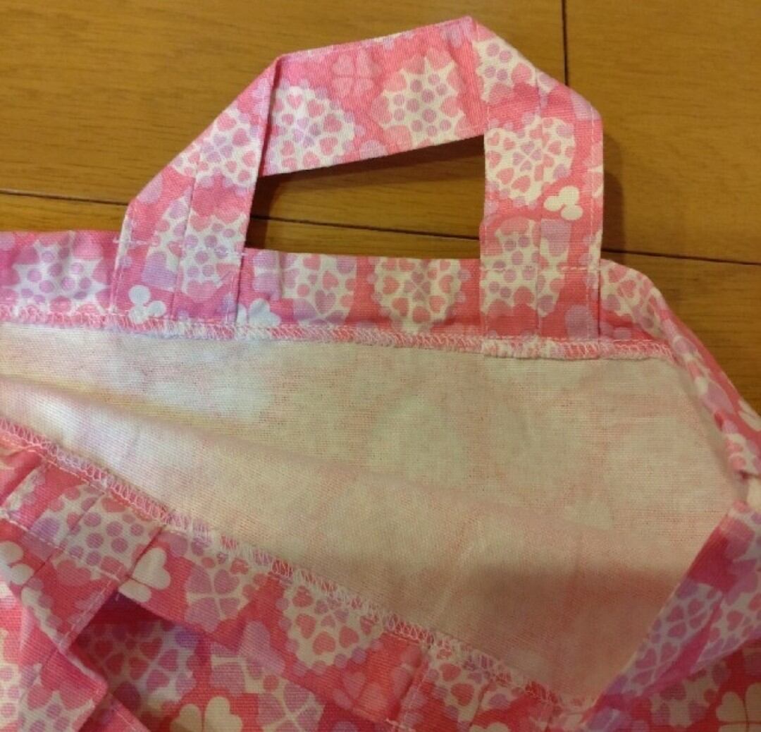 持ち手は共布でしっかりと作られており、持ち運びも便利です。
