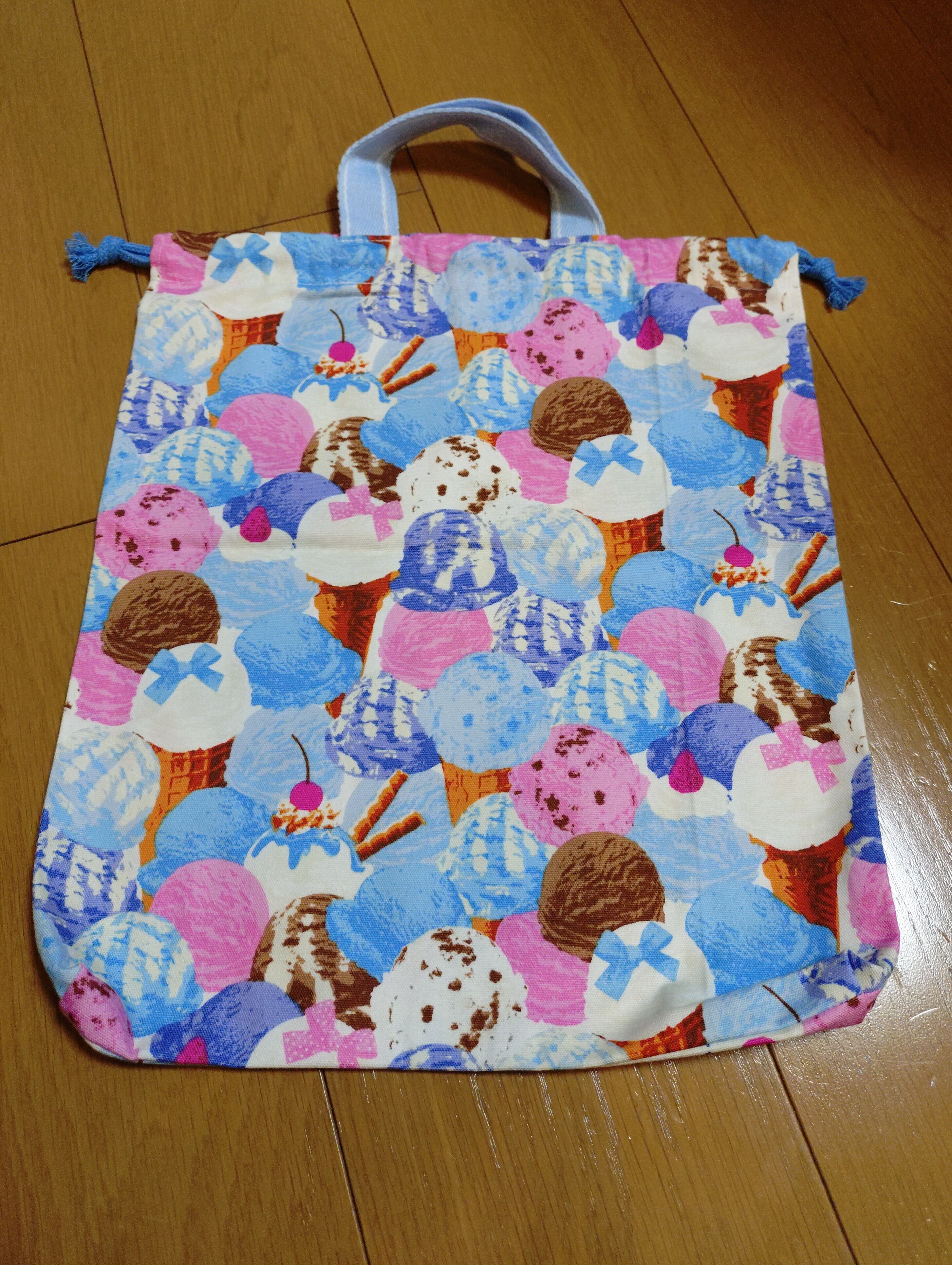 #巾着袋 #入園入学 #アイスクリーム柄 #持ち手付き #体操服入れ #カジュアルバッグ #文房具入れ #おしゃれ #ht-hana