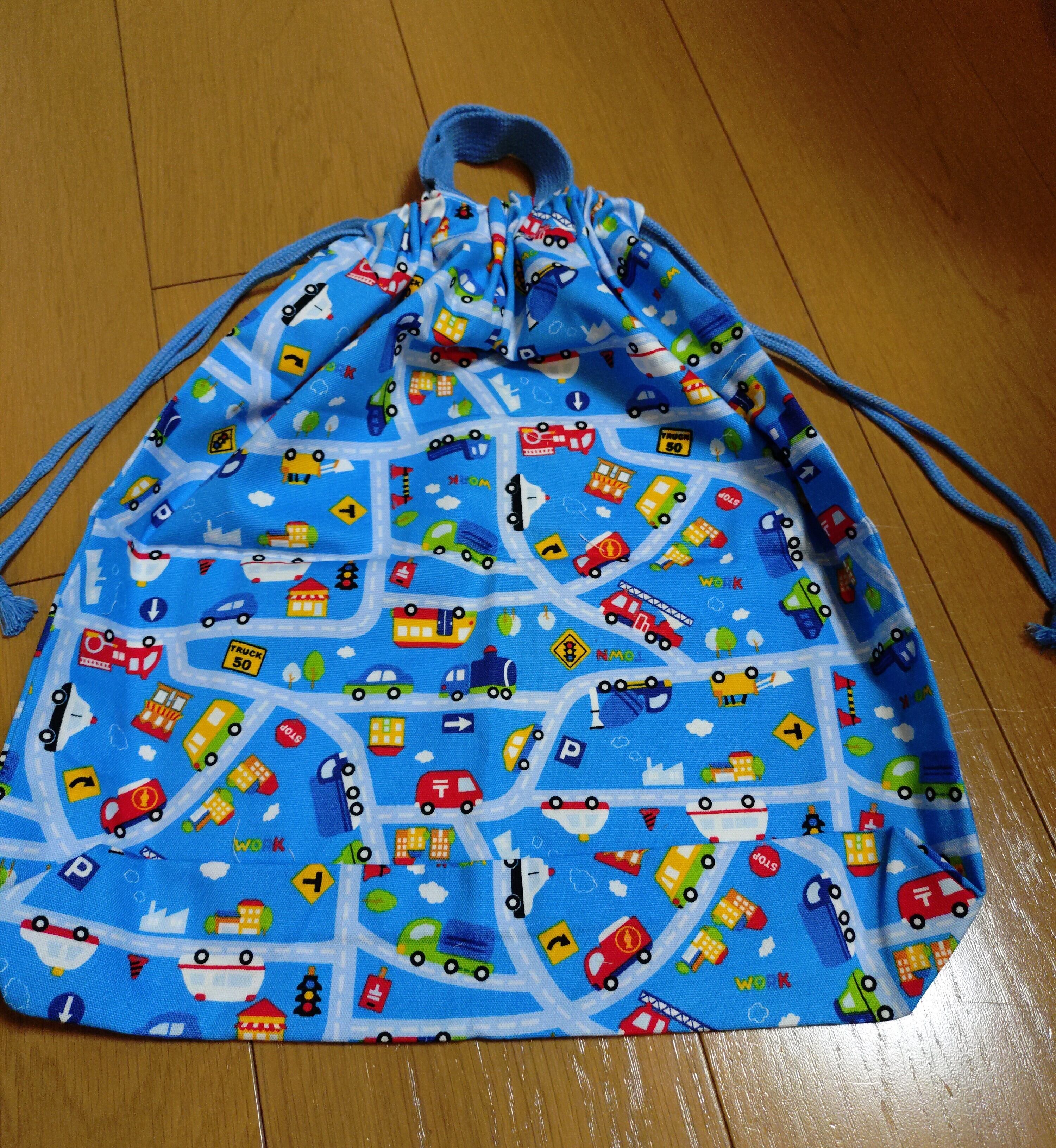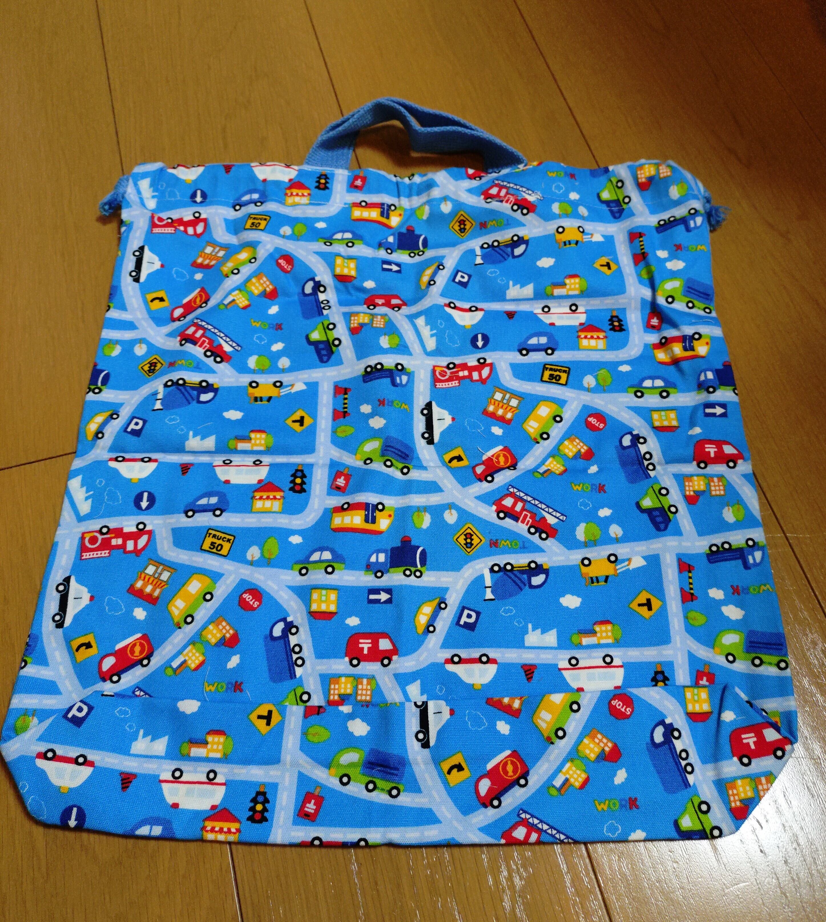 #巾着袋 #入園入学 #道路柄 #車柄 #持ち手付き #体操服入れ #カジュアルバッグ #文房具入れ #おしゃれ #ht-hana