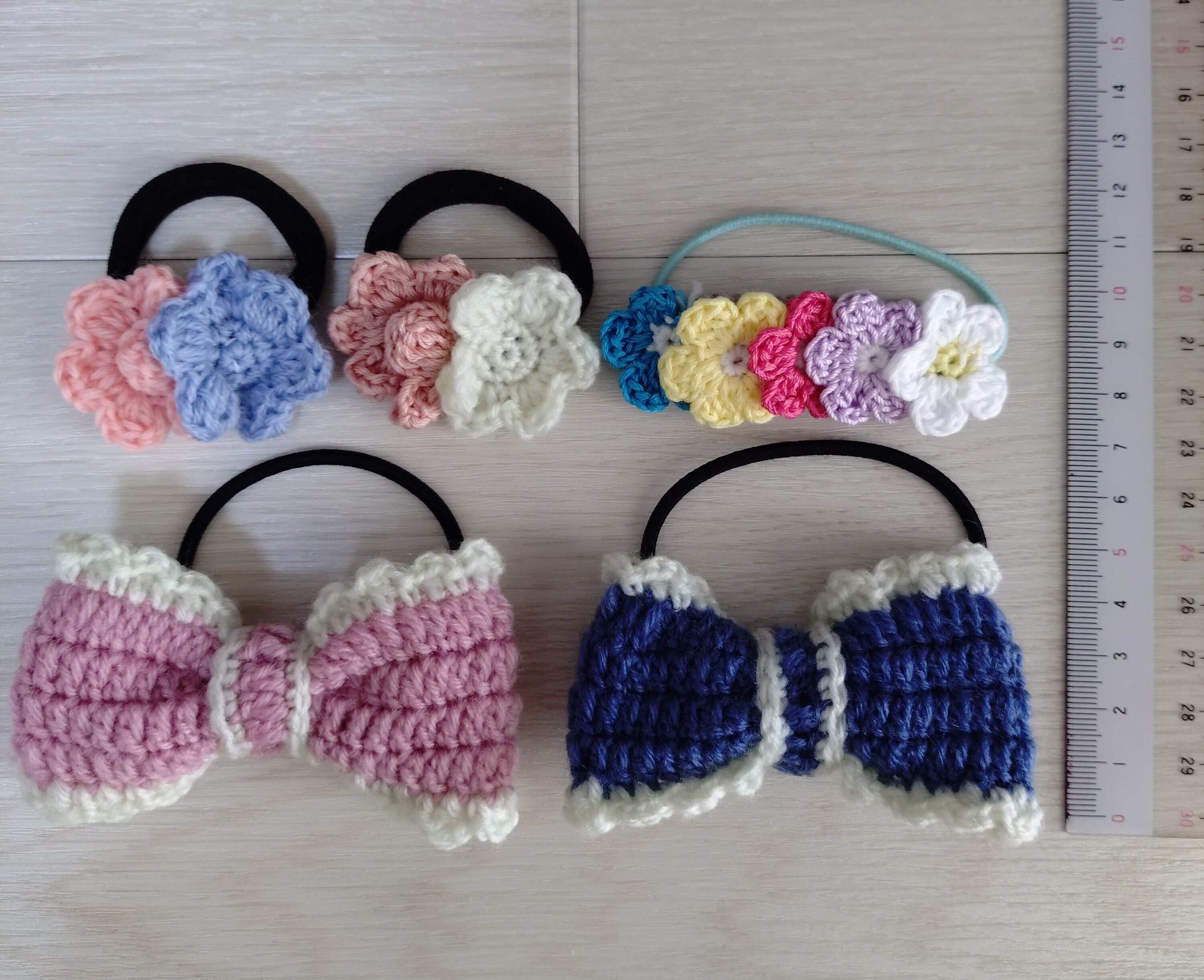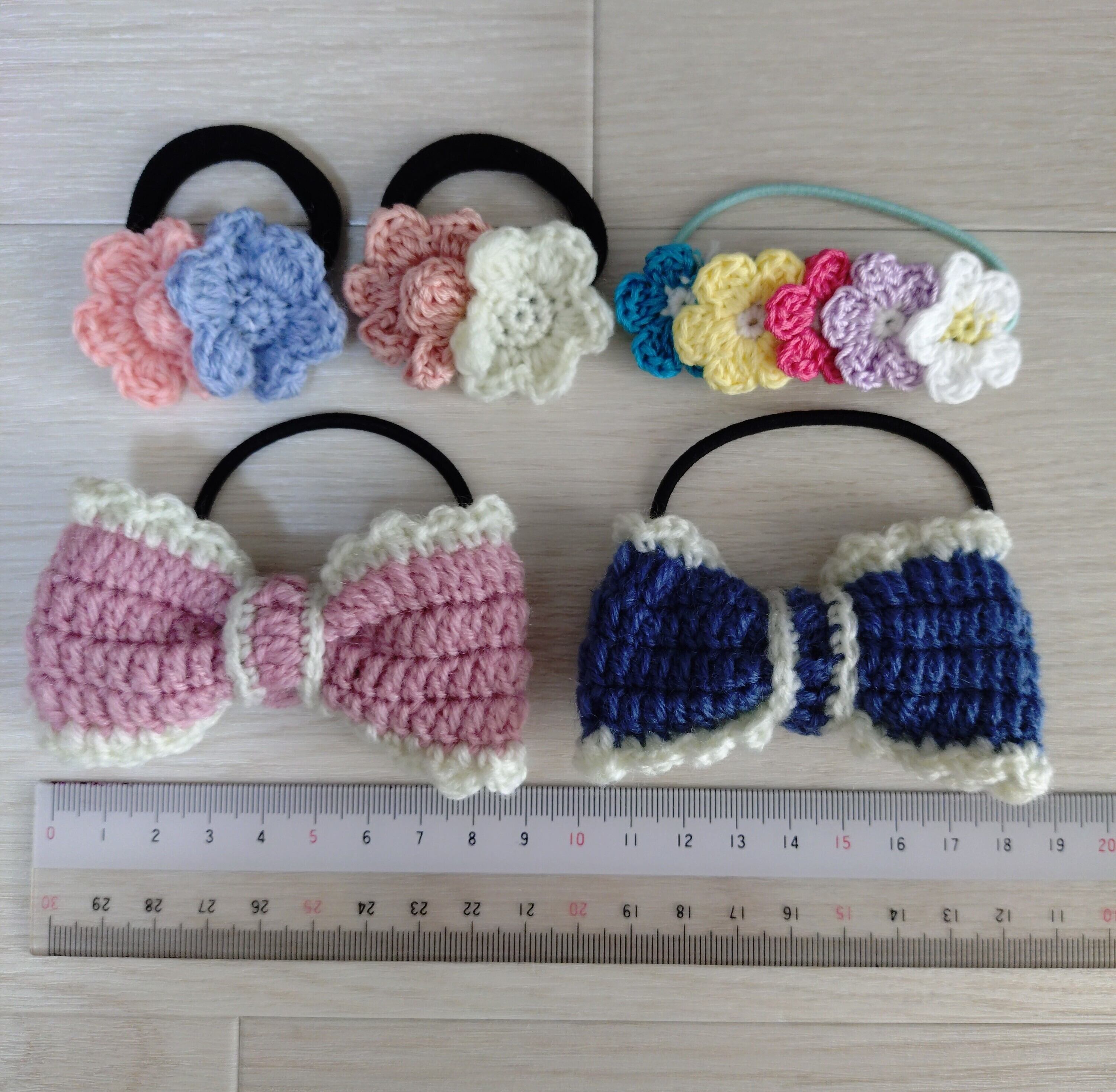 愛らしい毛糸で編まれた【ヘアゴム】5個セットです。