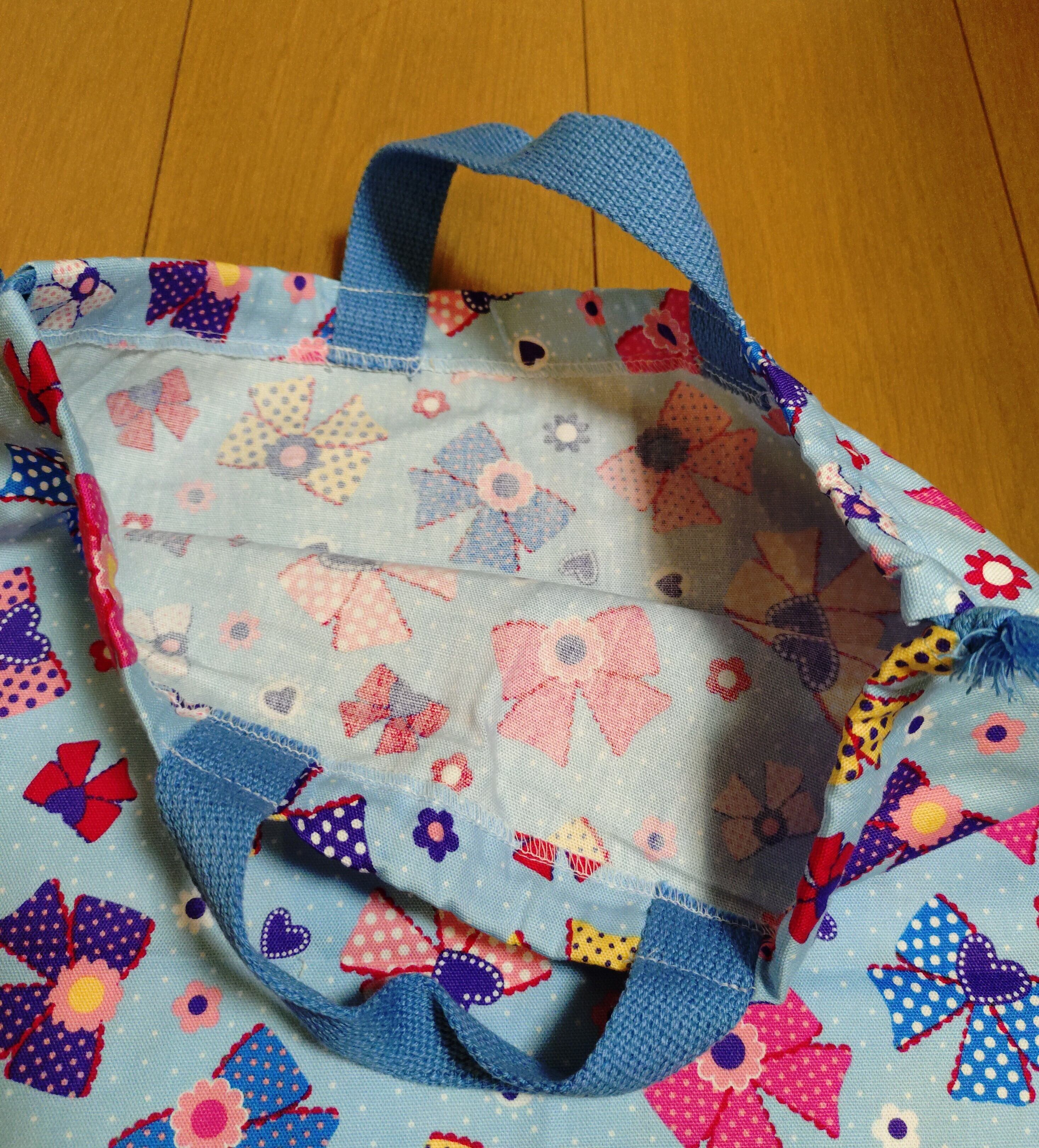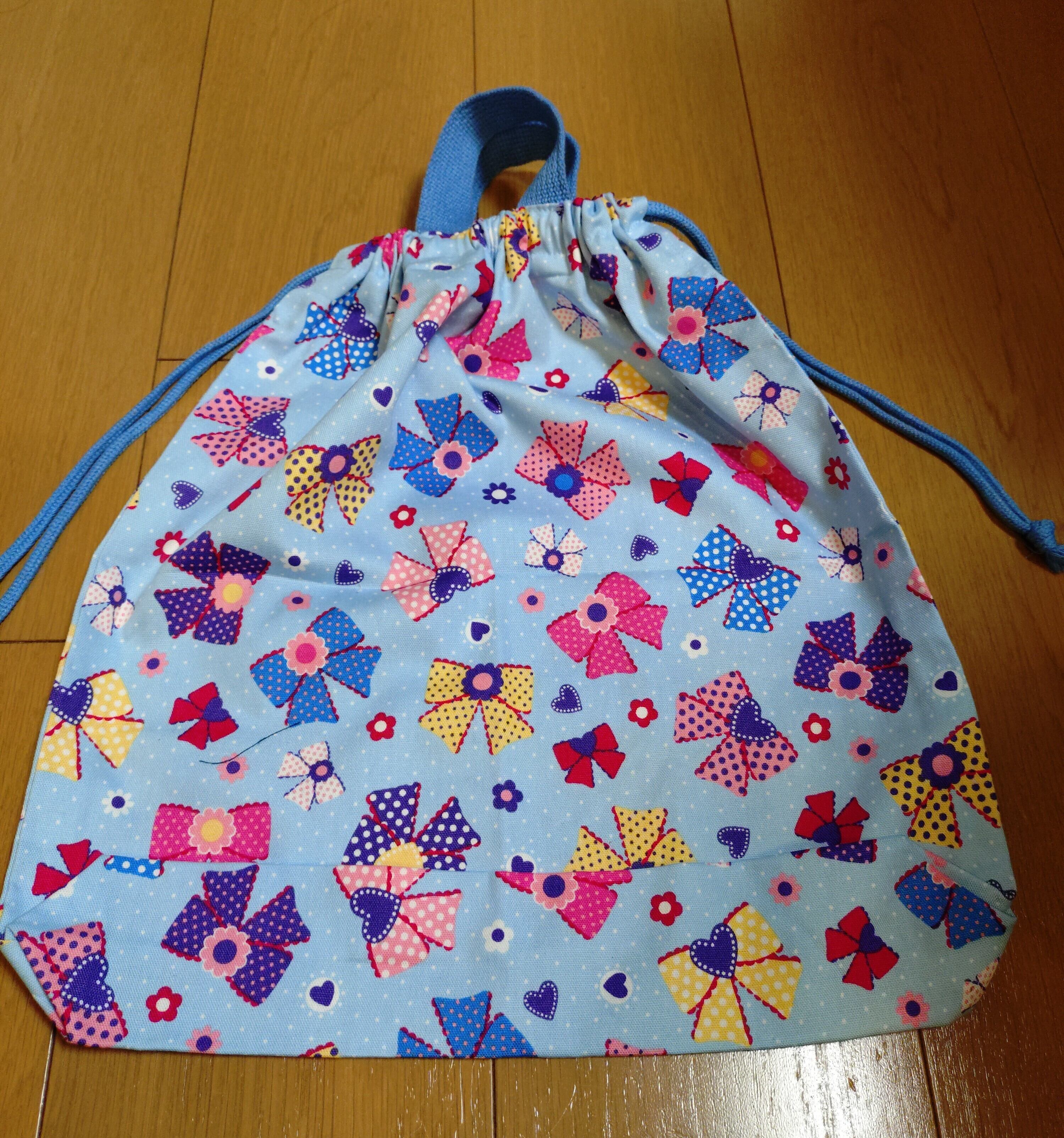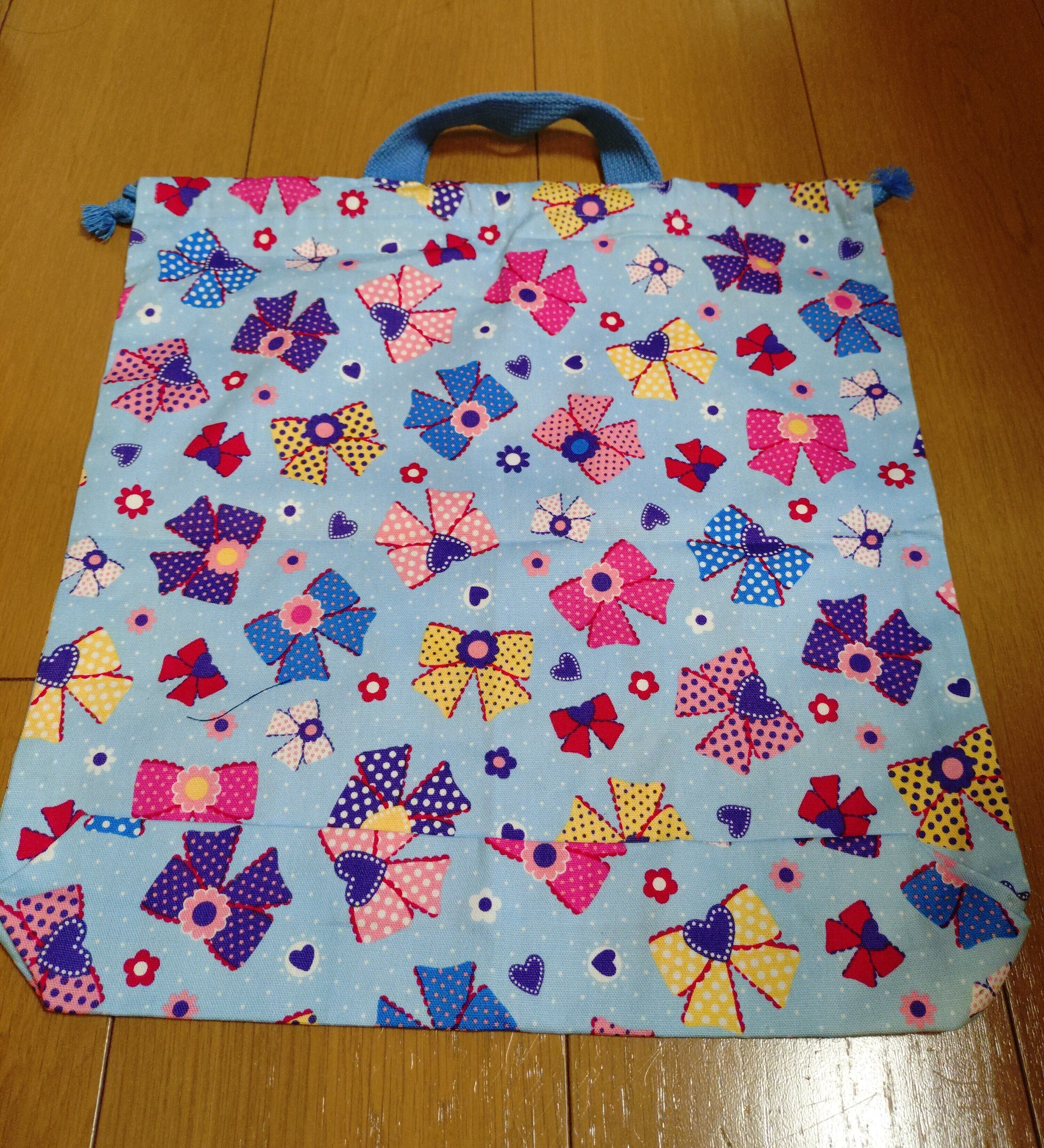 #巾着袋 #入園入学 #リボン柄 #持ち手付き #体操服入れ #カジュアルバッグ #文房具入れ #おしゃれ #ht-hana
