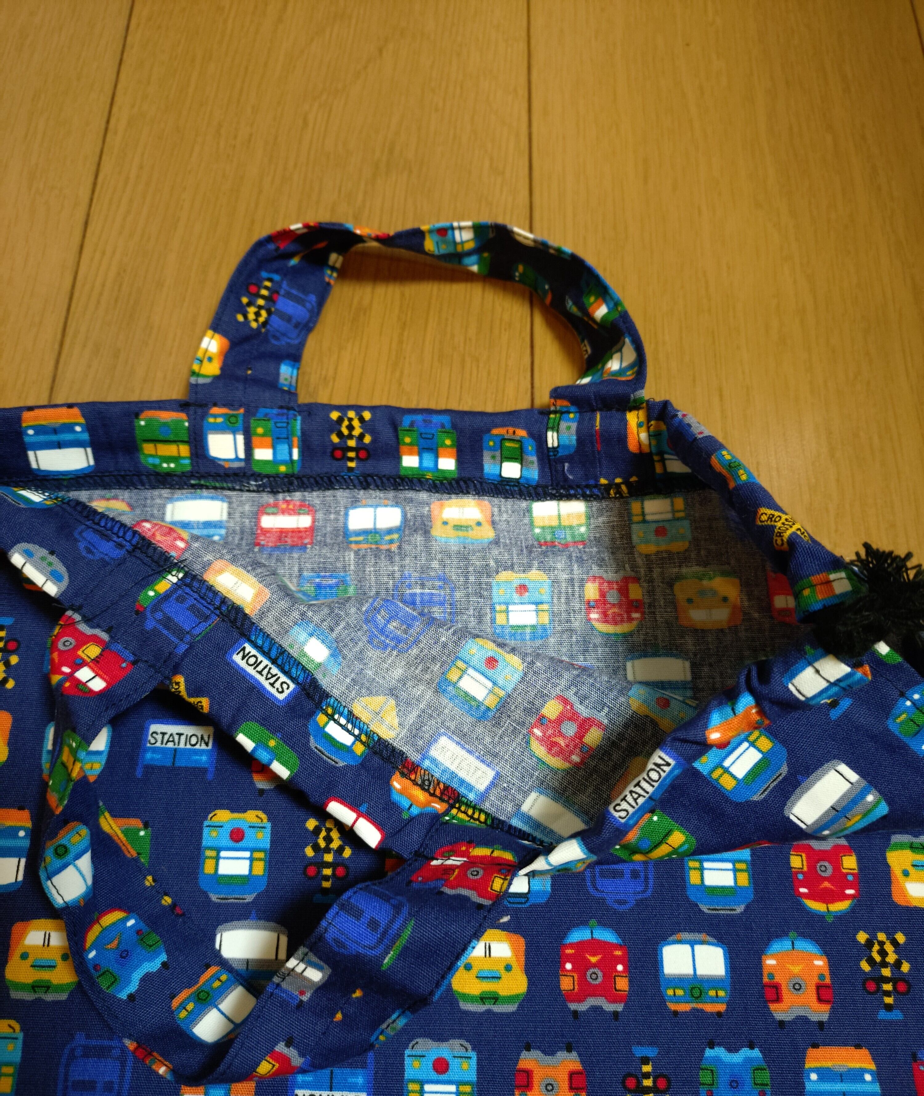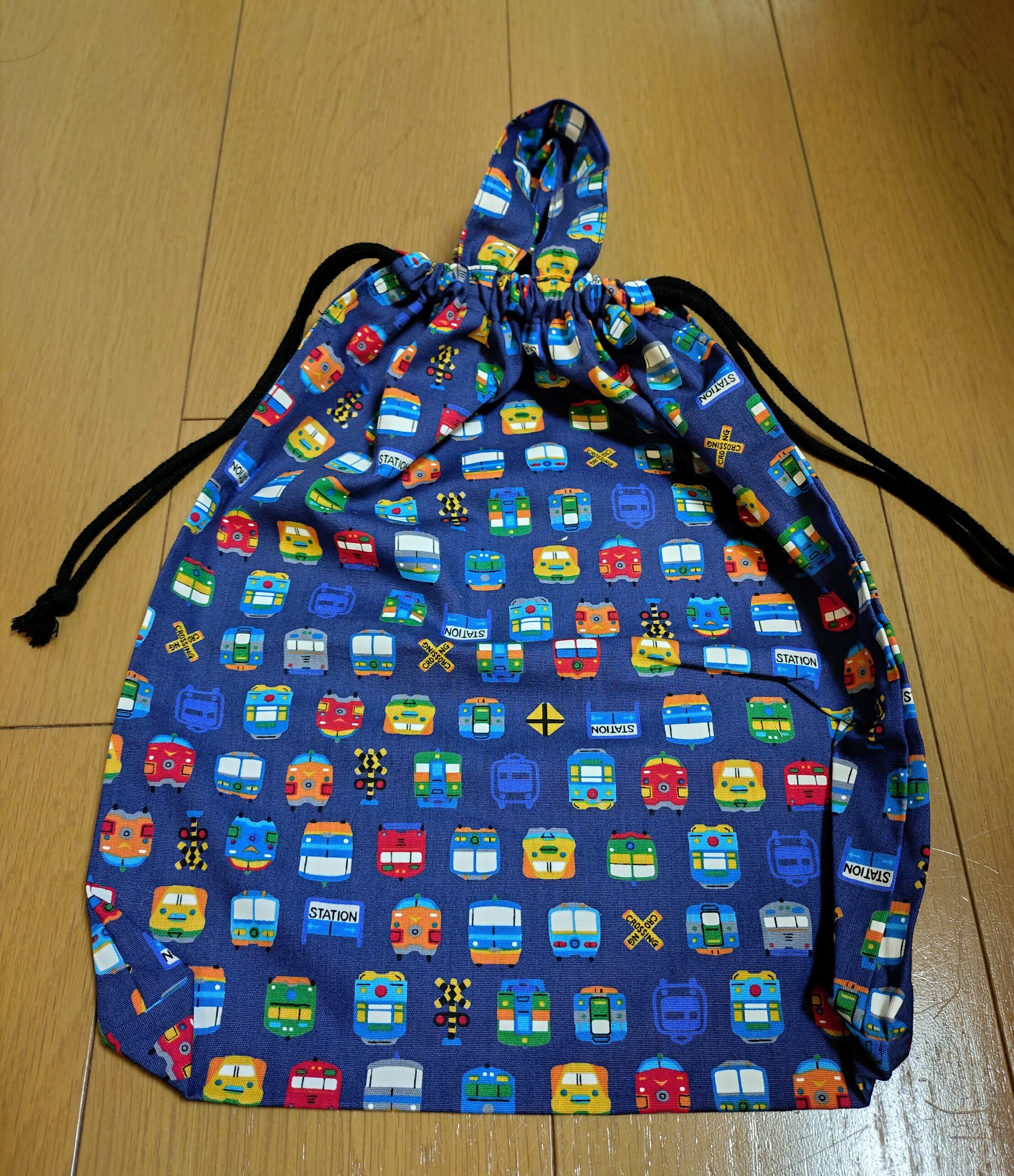 #巾着袋 #入園入学 #電車柄 #持ち手付き #体操服入れ #カジュアルバッグ #文房具入れ #おしゃれ #ht-hana