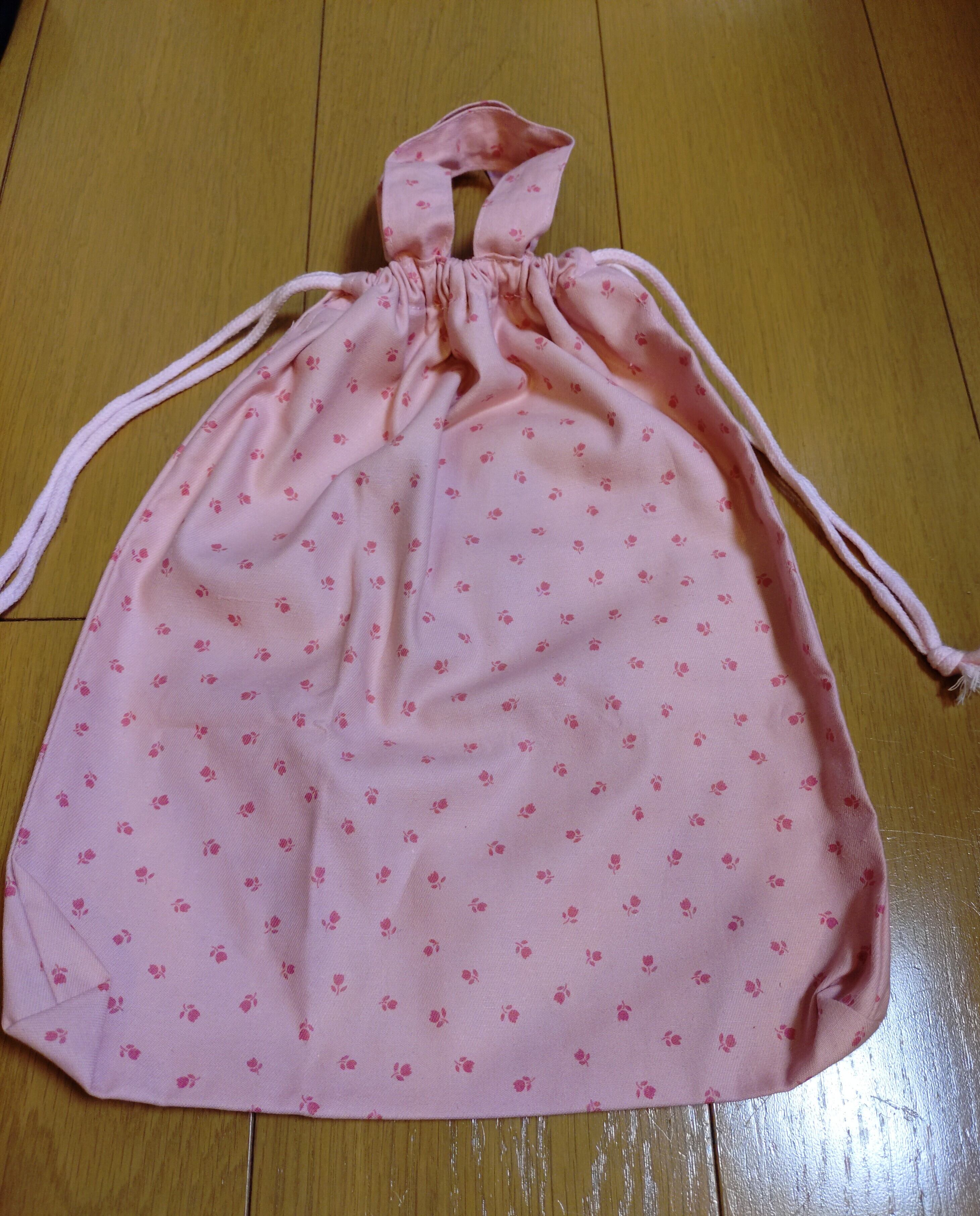 お子様の大切なアイテムを可愛く守る、そんな役割をしてくれる巾着袋です。