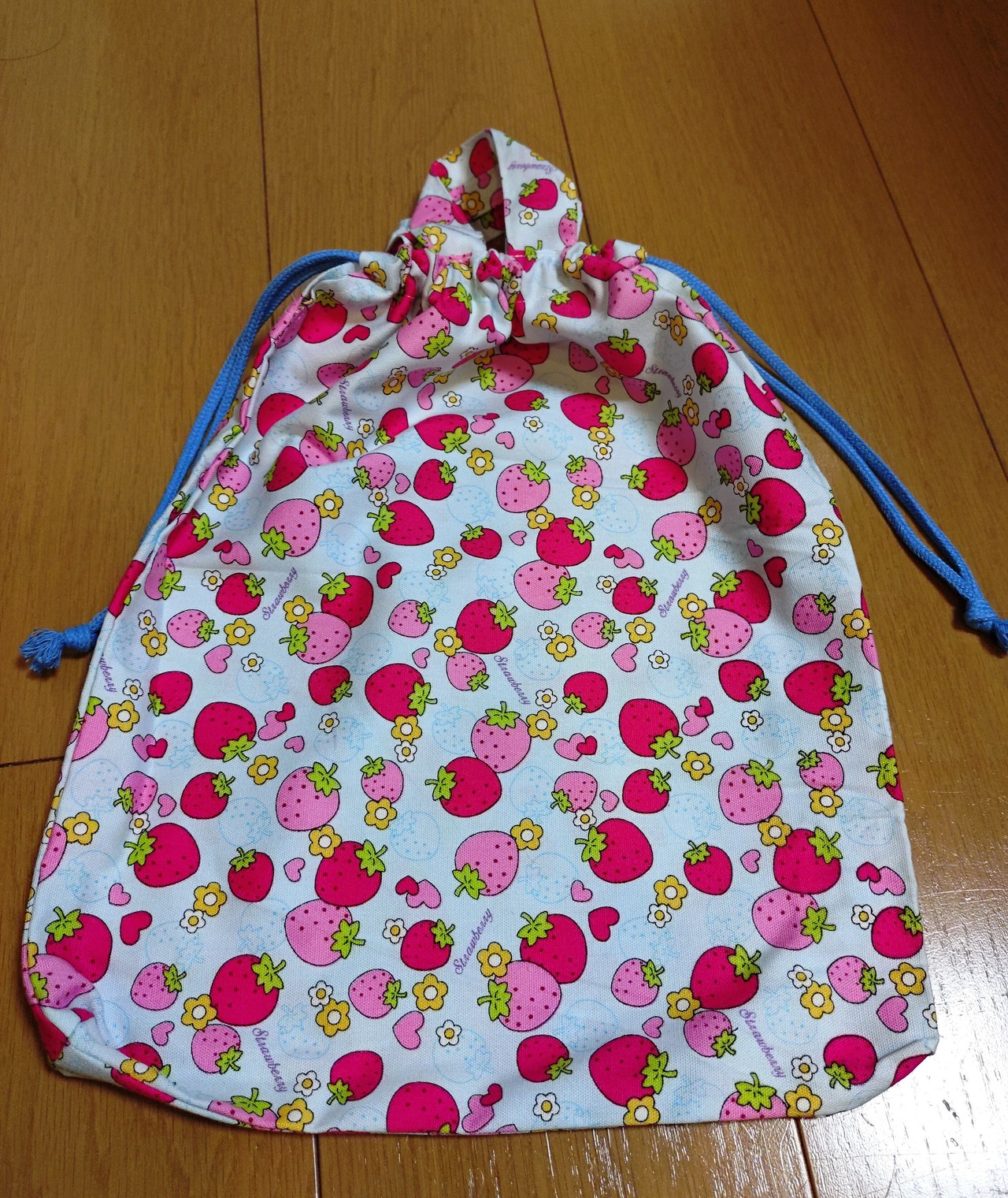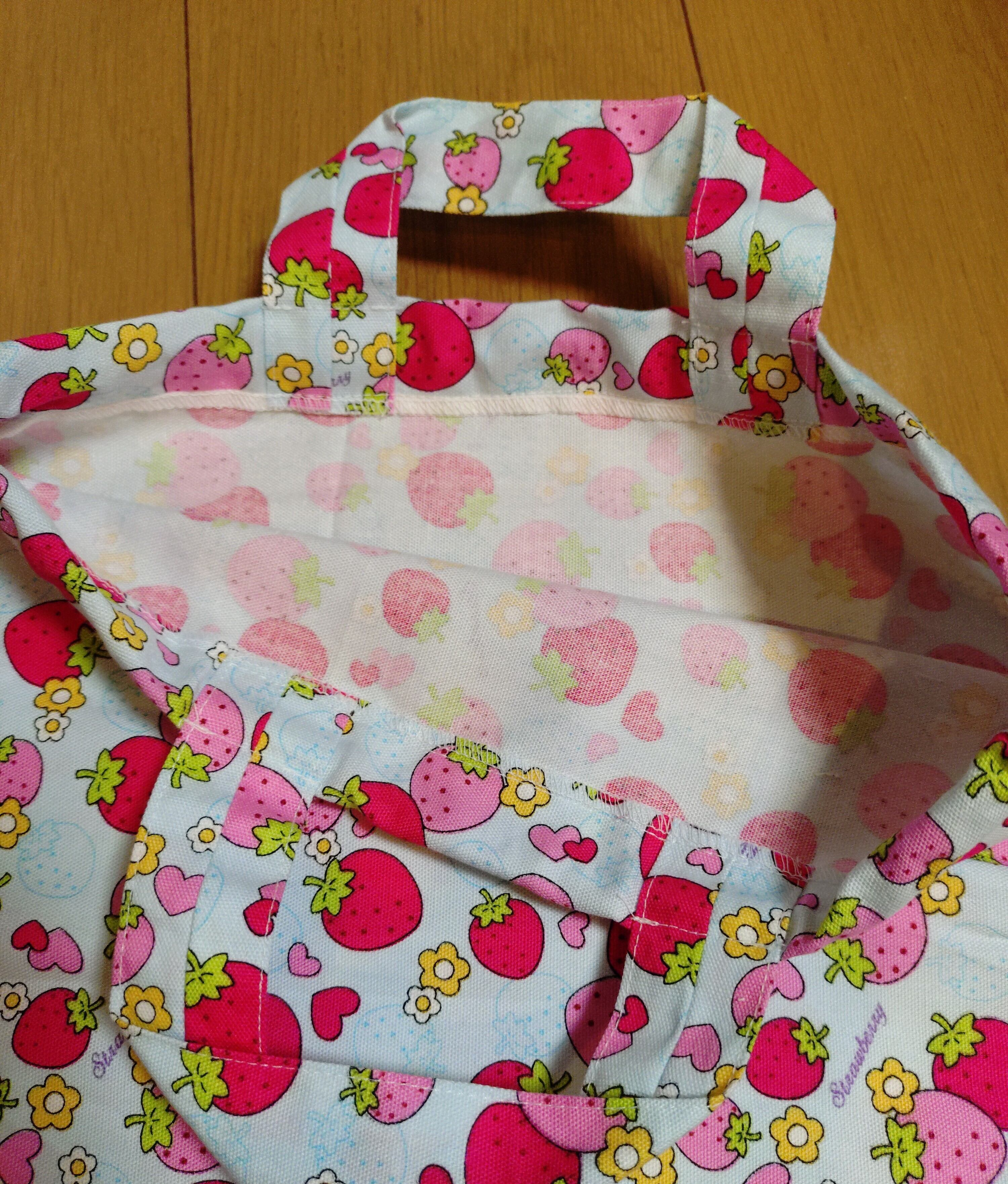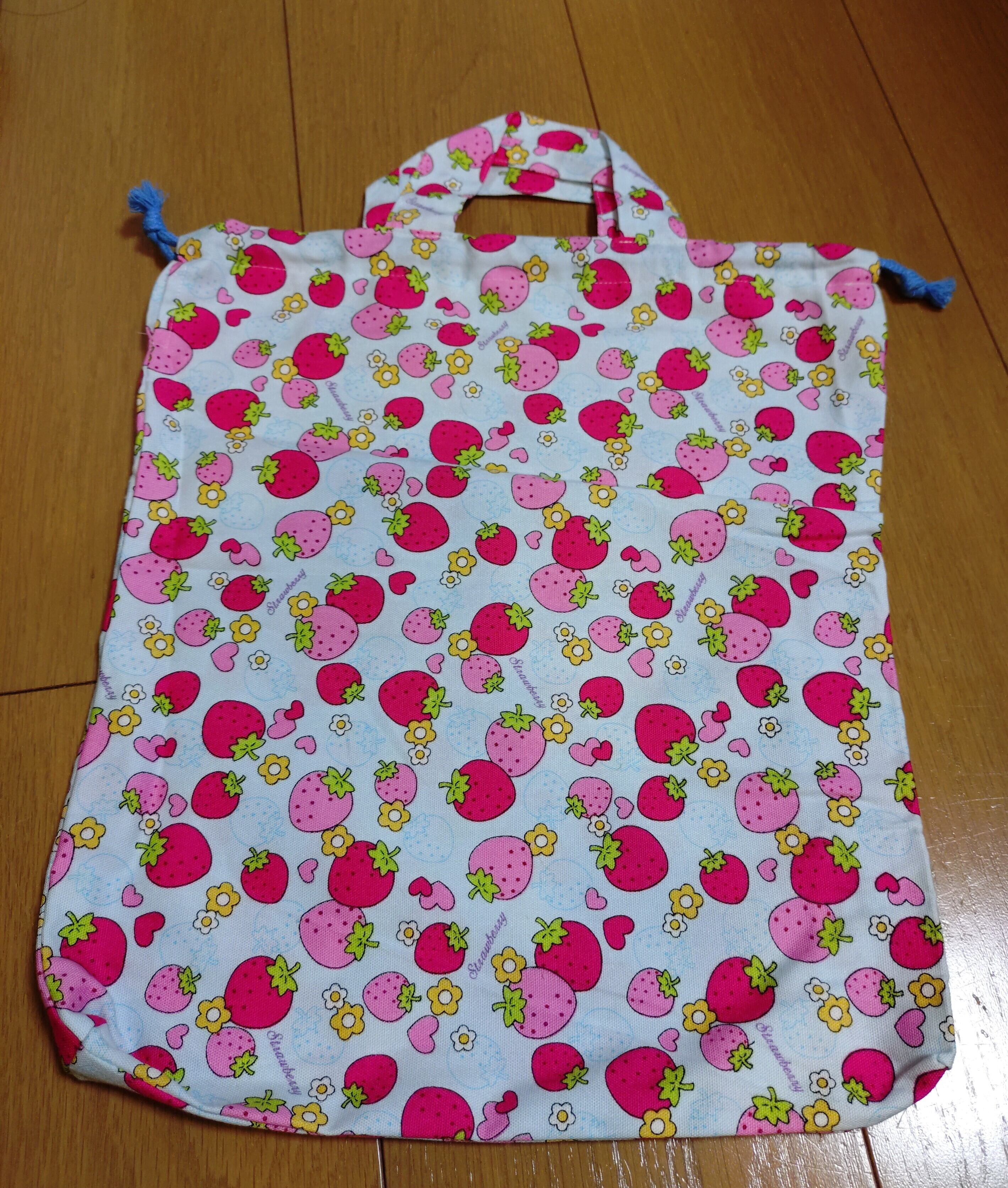 #巾着袋 #入園入学 #イチゴ柄 #持ち手付き #体操服入れ #カジュアルバッグ #文房具入れ #おしゃれ #ht-hana