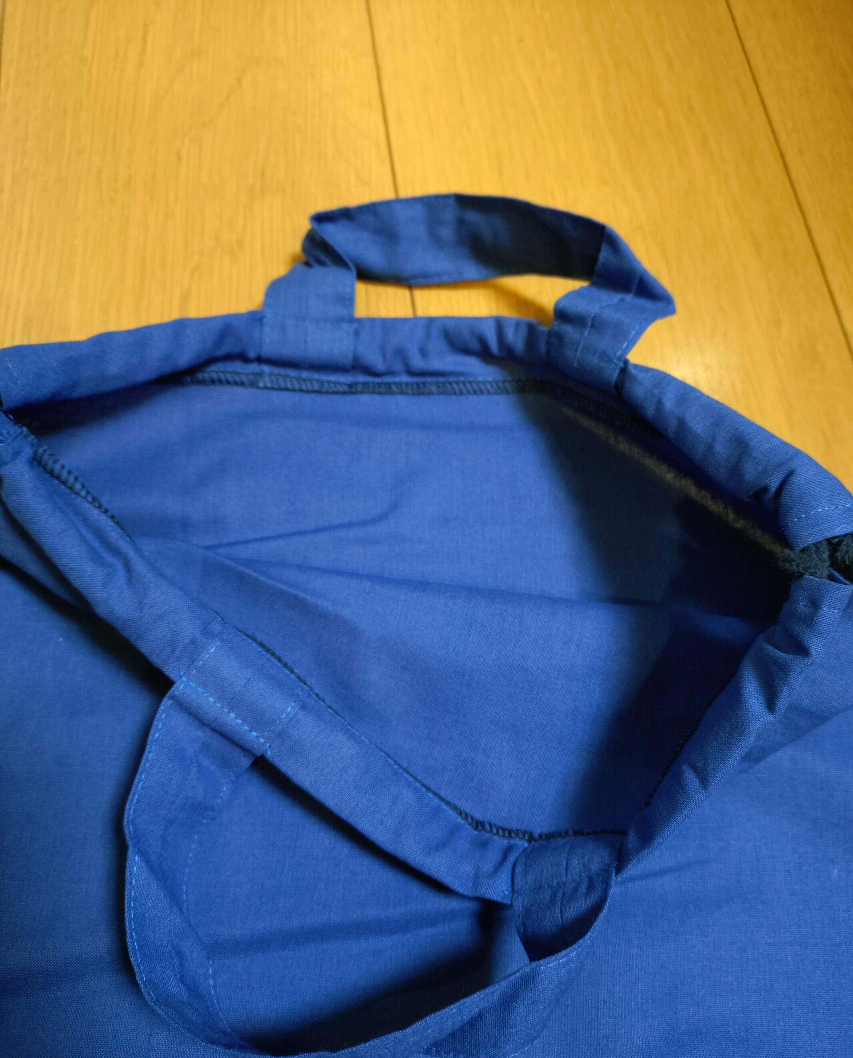 持ち手は共布でしっかりと作られており、持ち運びも便利です。