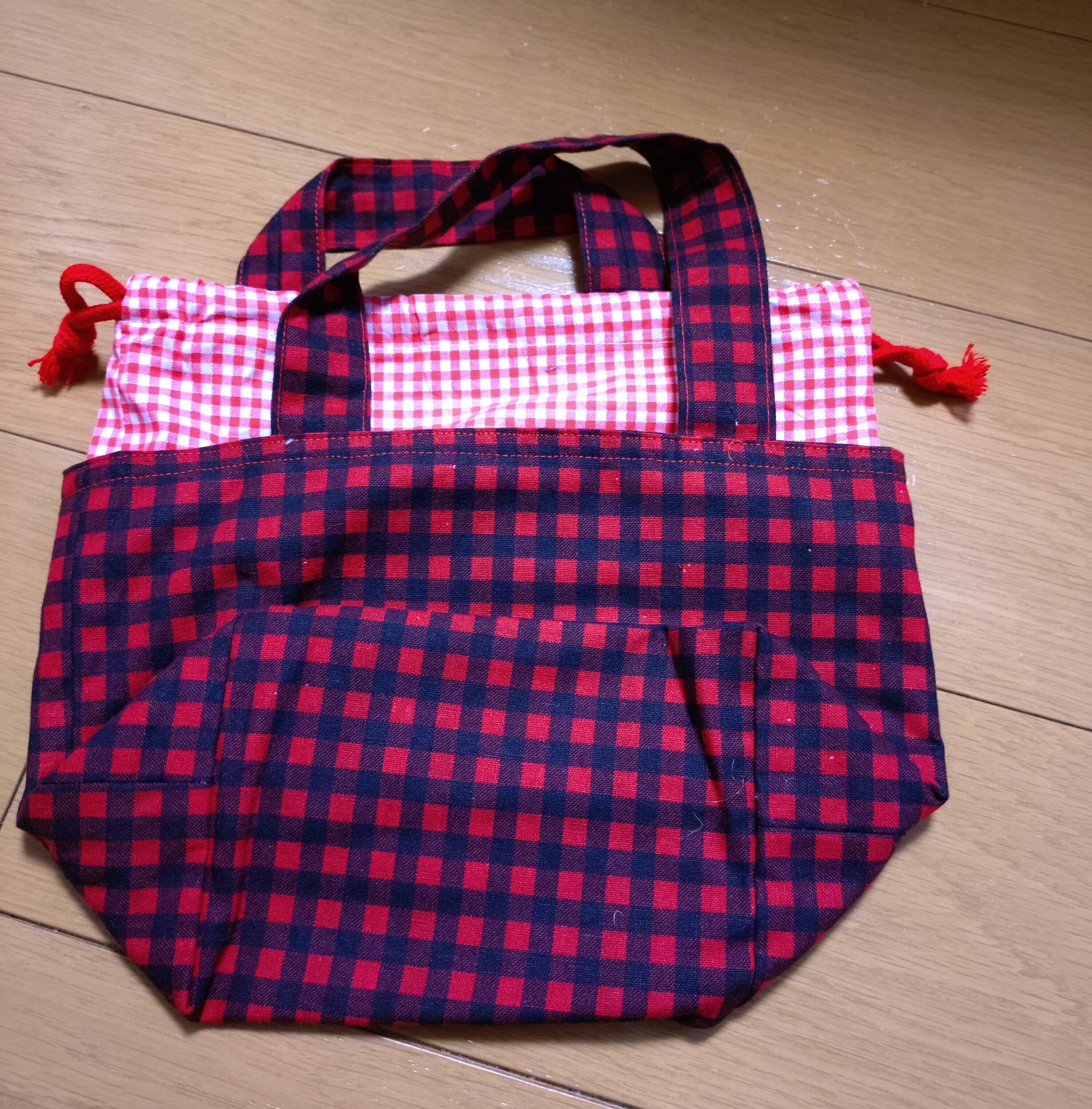 #トートバッグ #チェック #お弁当入れ #巾着袋 #おしゃれ #カジュアル #生活必需品