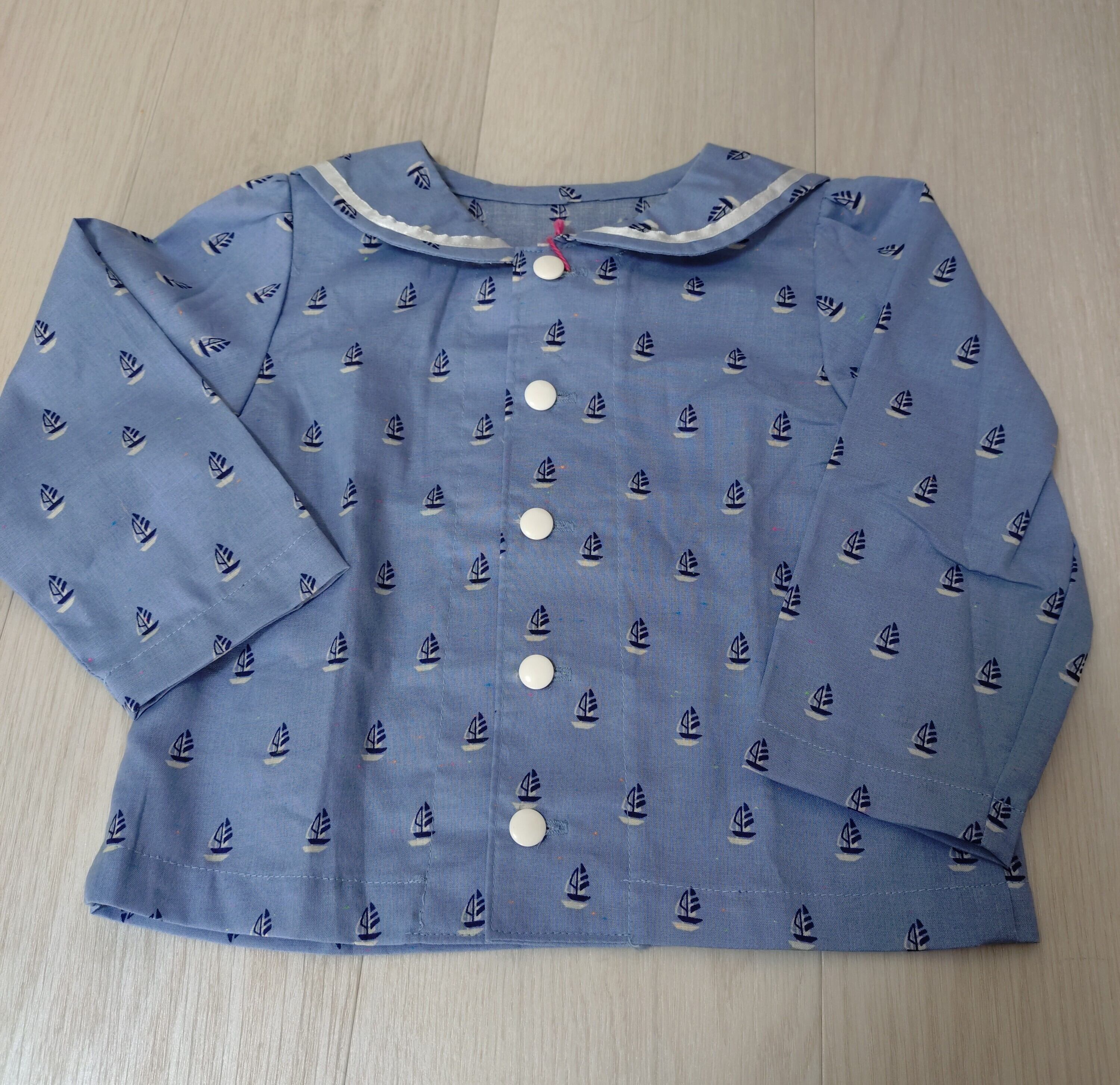ハンドメイドの長袖セーラーカラーブラウスです