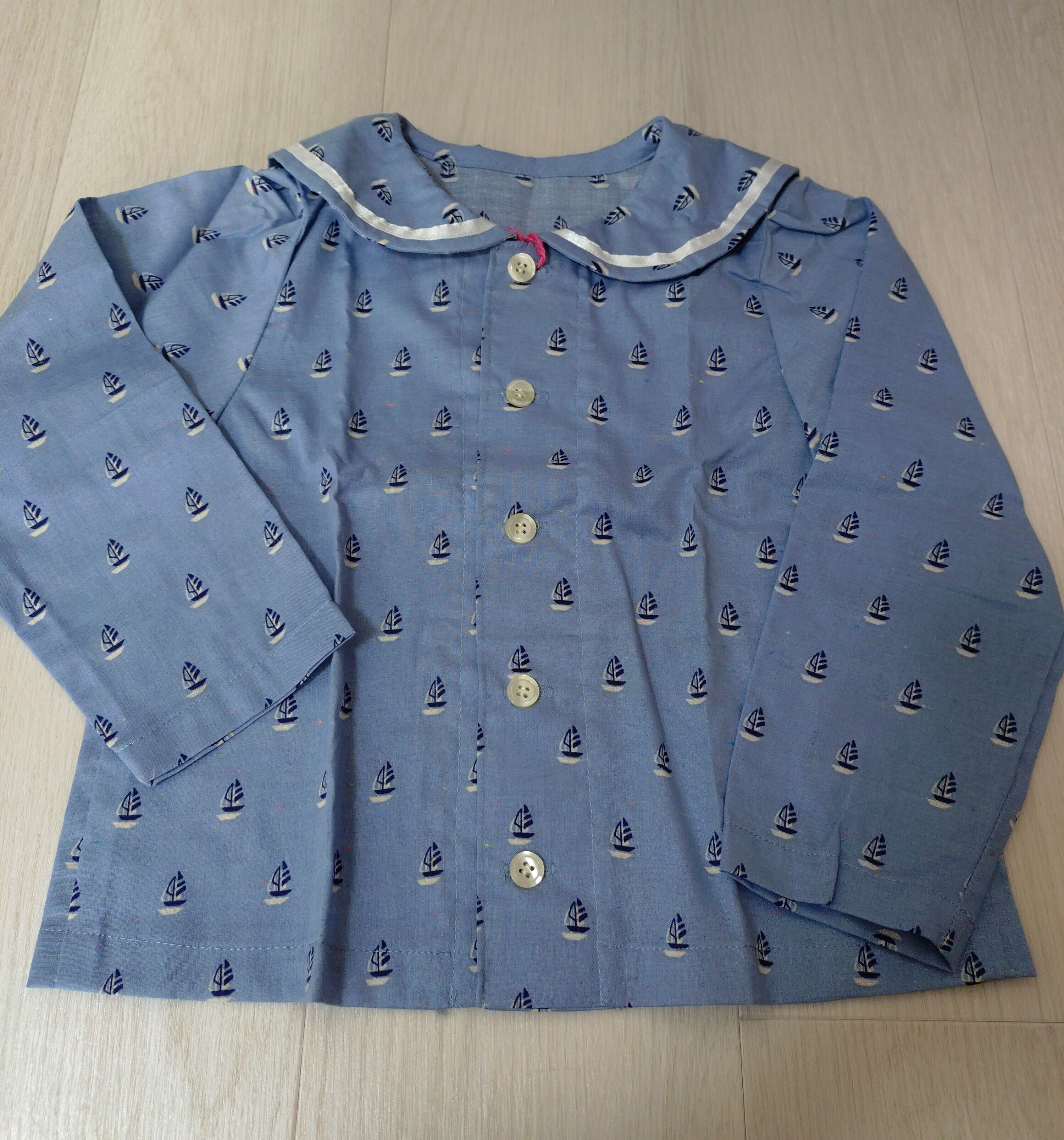 ハンドメイドの長袖セーラーカラーブラウスです