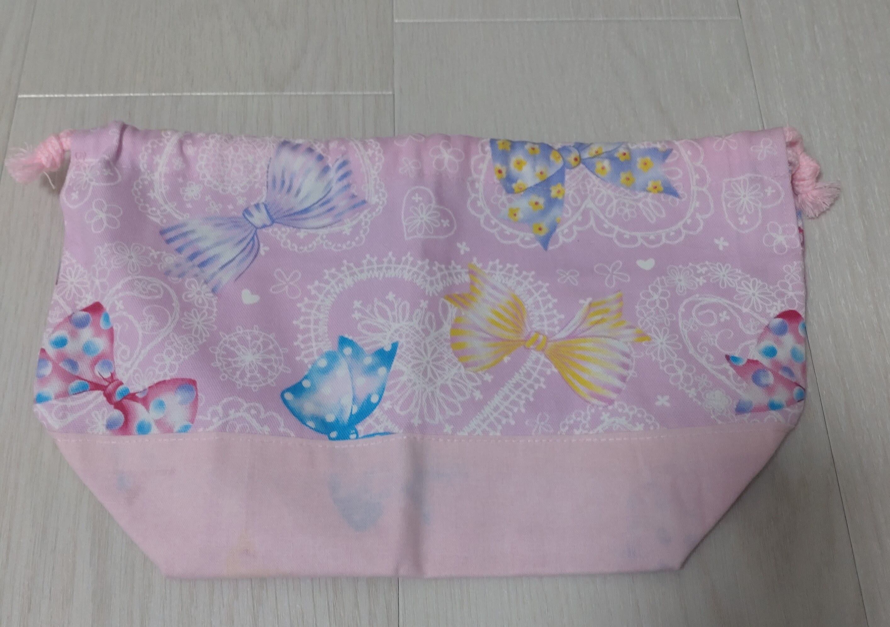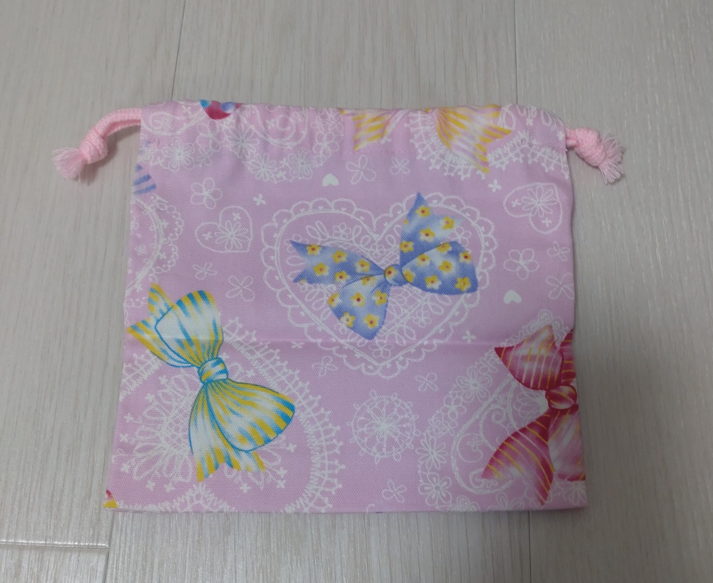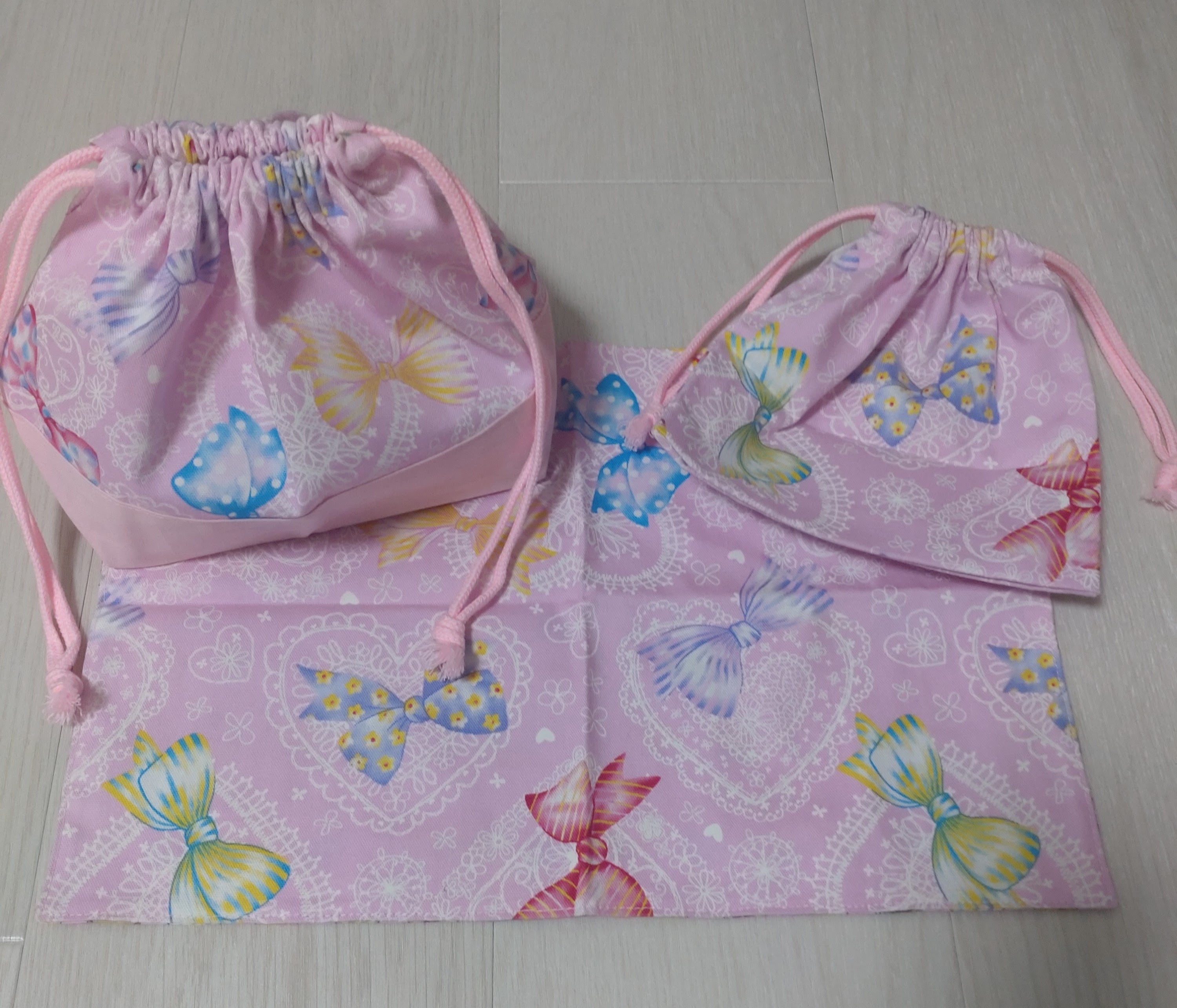 お弁当袋 コップ袋 ランチョンマット 3点セット リボン柄 ピンク