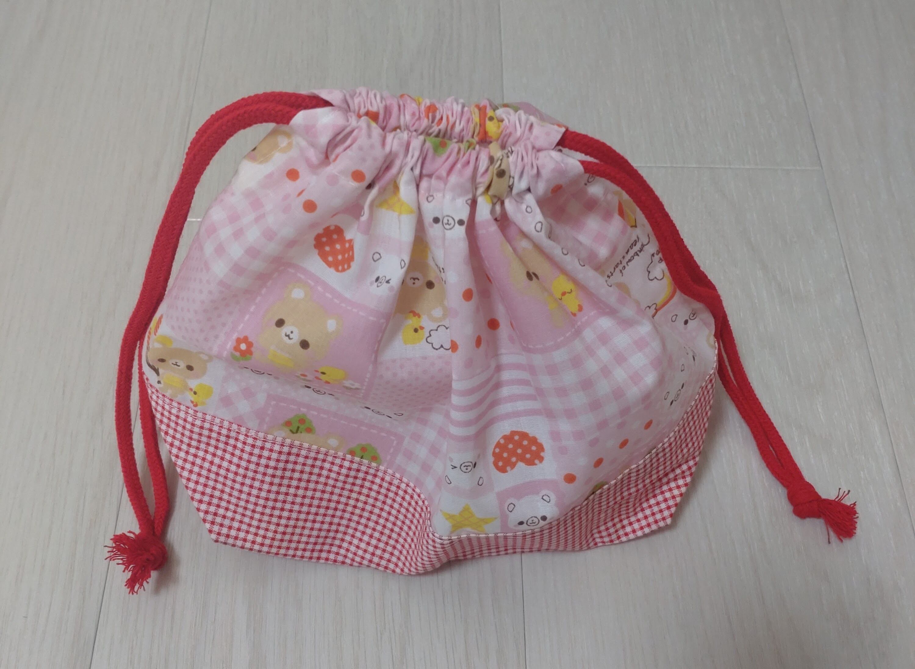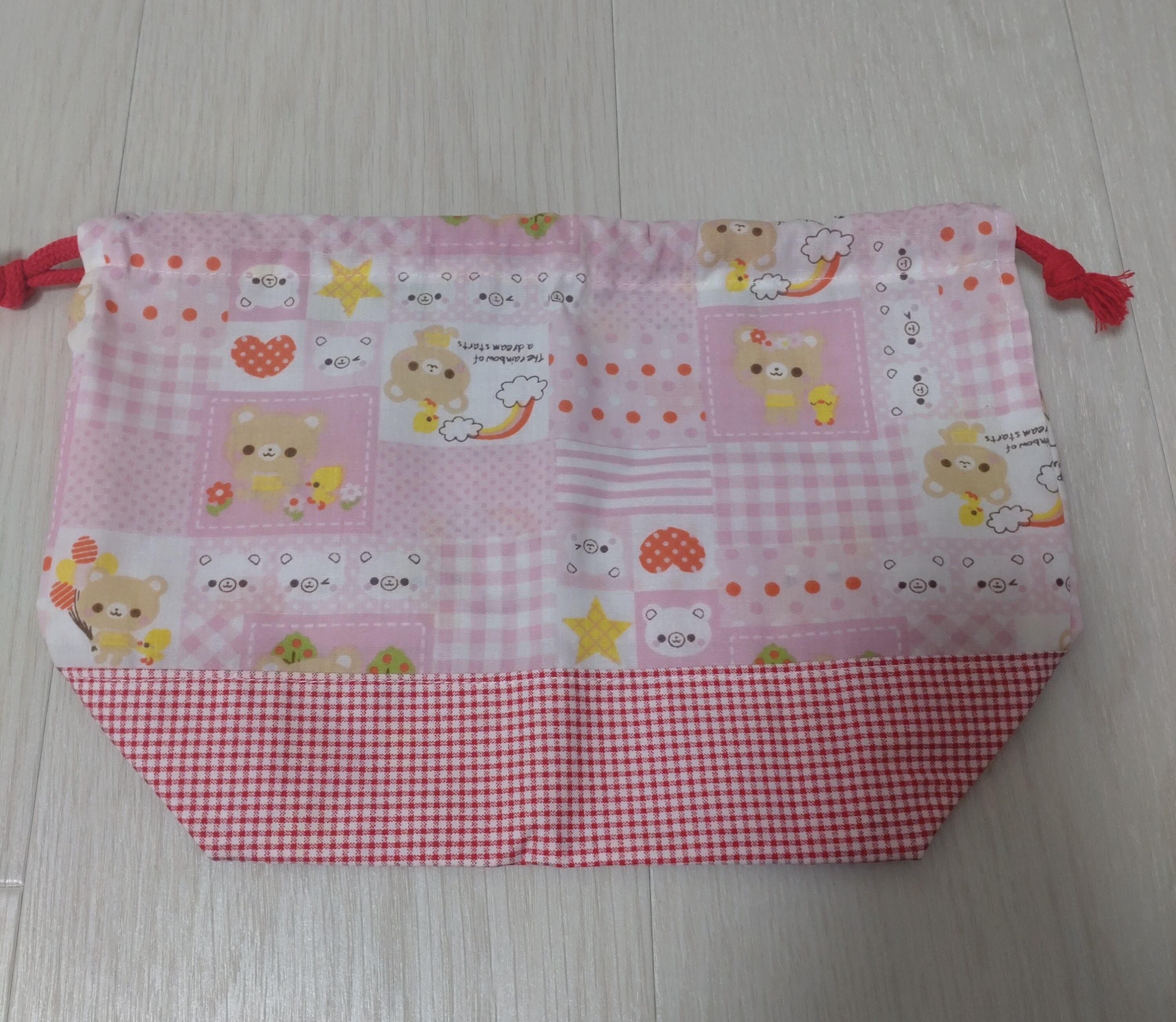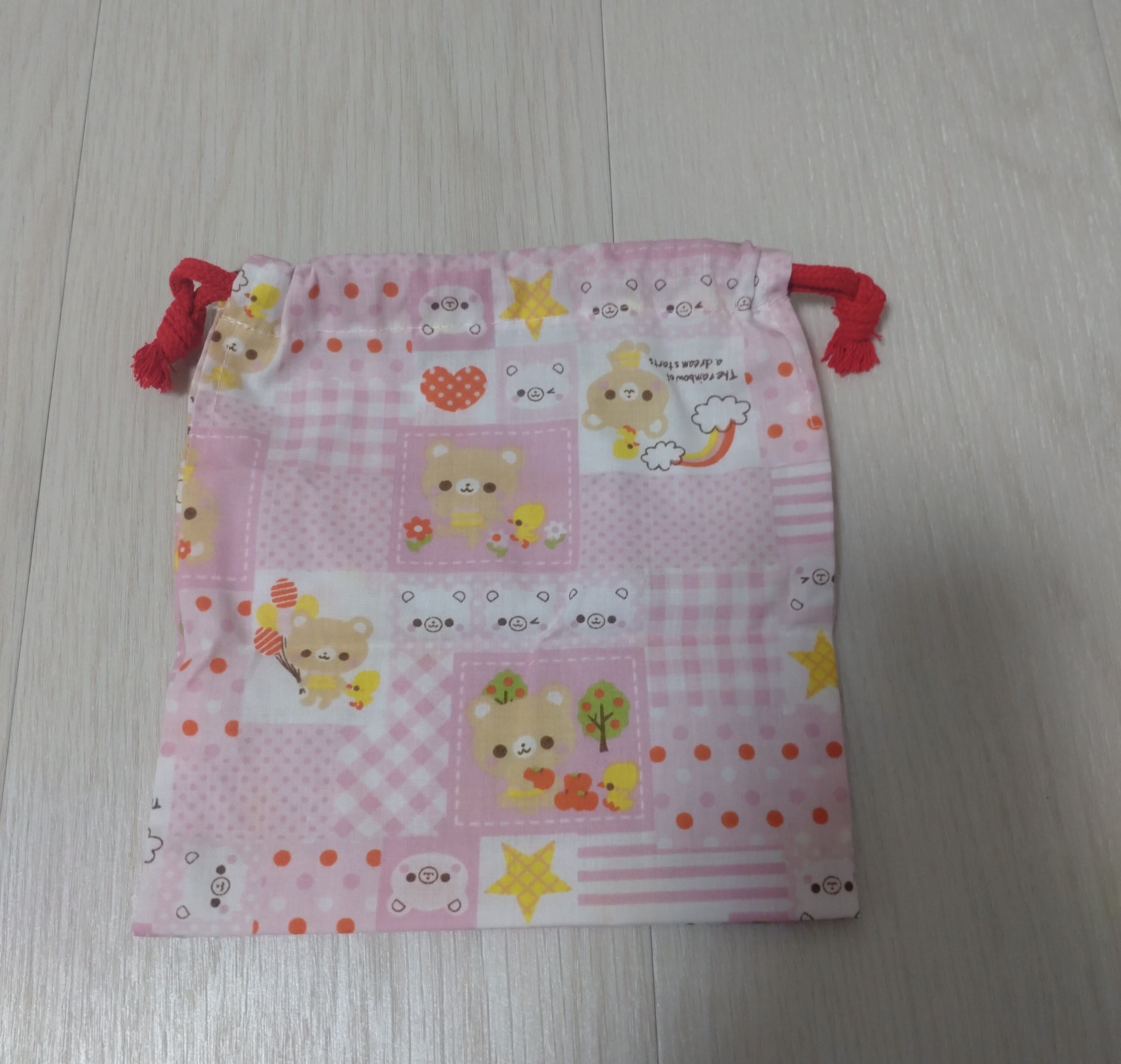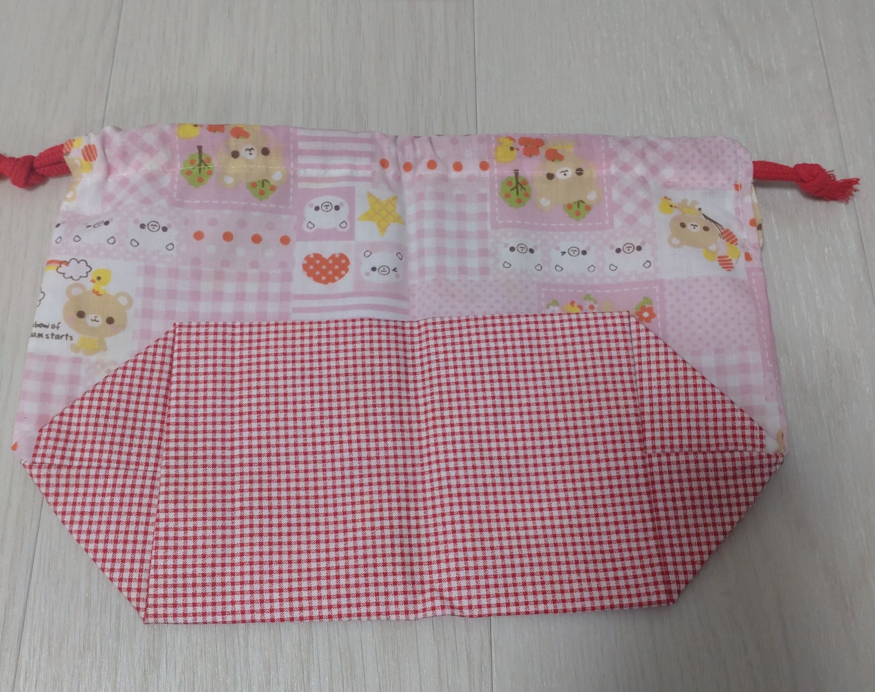 ハンドメイドのお弁当袋、コップ袋、ランチョンマットの3点セットです。